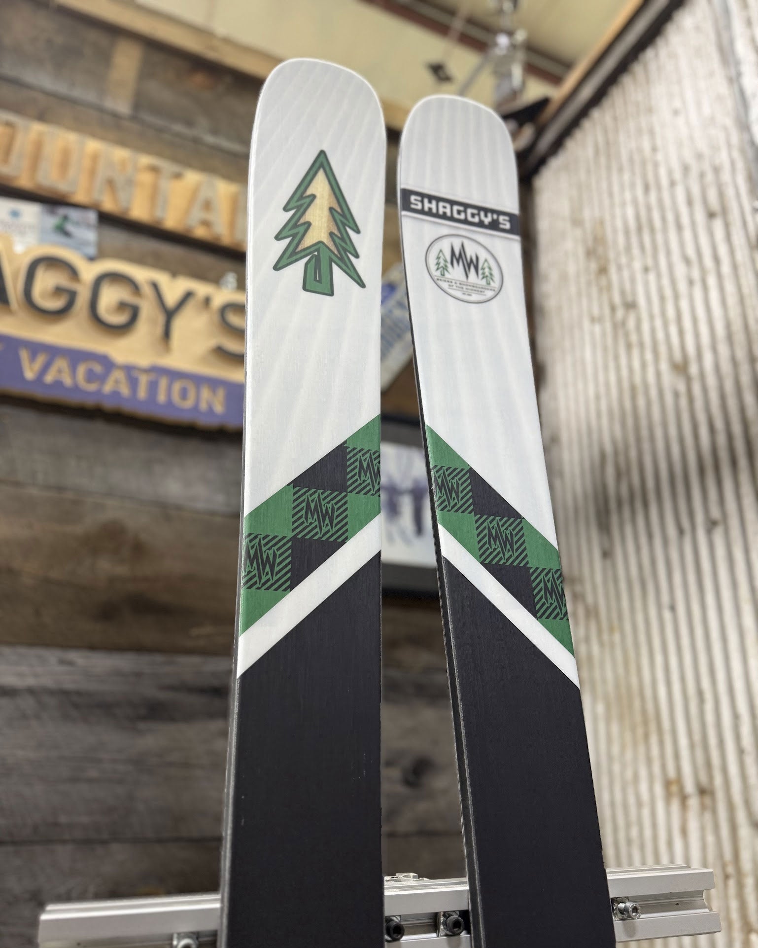 Have you wanted a pair of custom skis to set yourself apart from the rest of the crowd? Here's your opportunity to get your hands on a pair of Shaggy's with a unique look! These skis have a custom graphic and black/blue color swap bases, are already built, and are ready to ship at a moment's notice.
