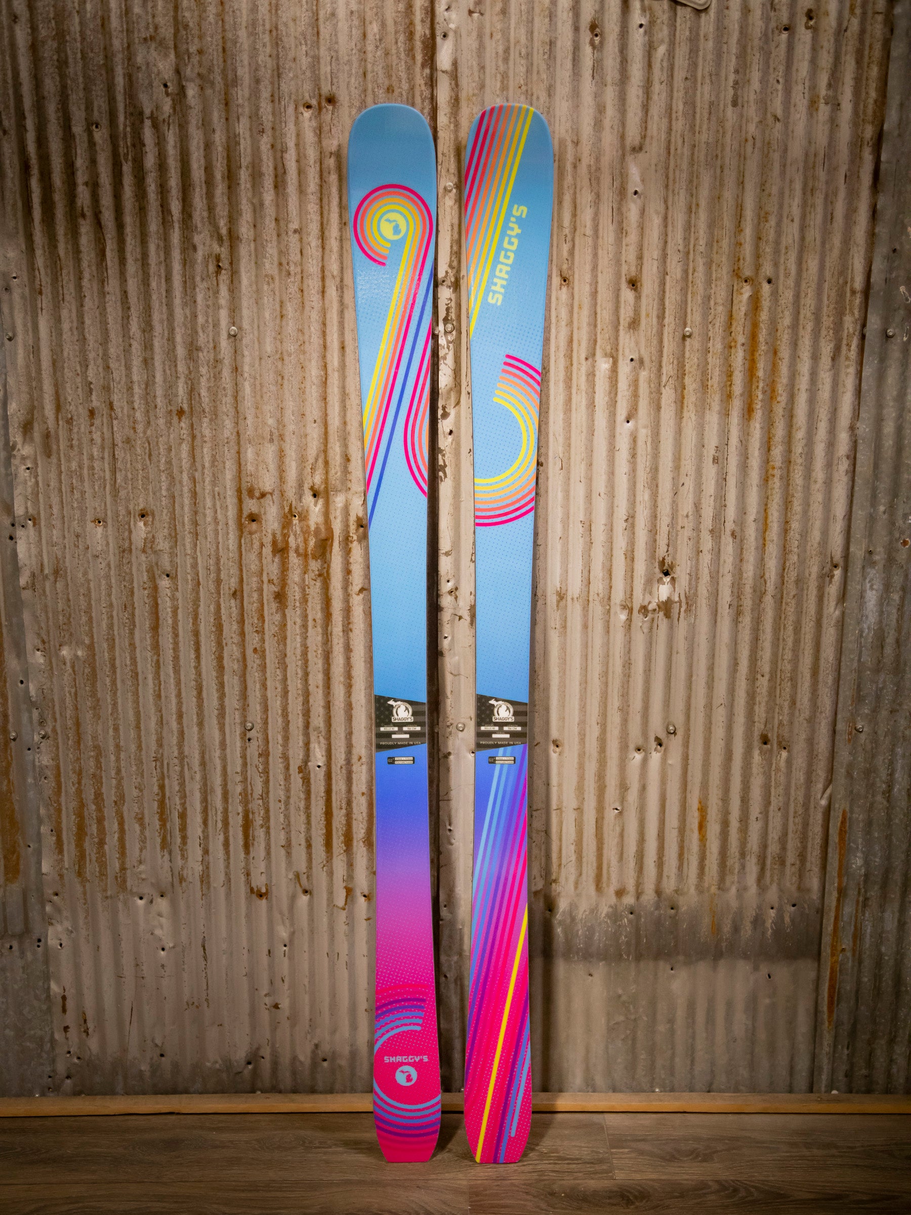 Have you wanted a pair of custom skis to set yourself apart from the rest of the crowd? Here's your opportunity to get your hands on a pair of Shaggy's with a unique look! These skis have a custom graphic and black/blue color swap bases, are already built, and are ready to ship at a moment's notice.
