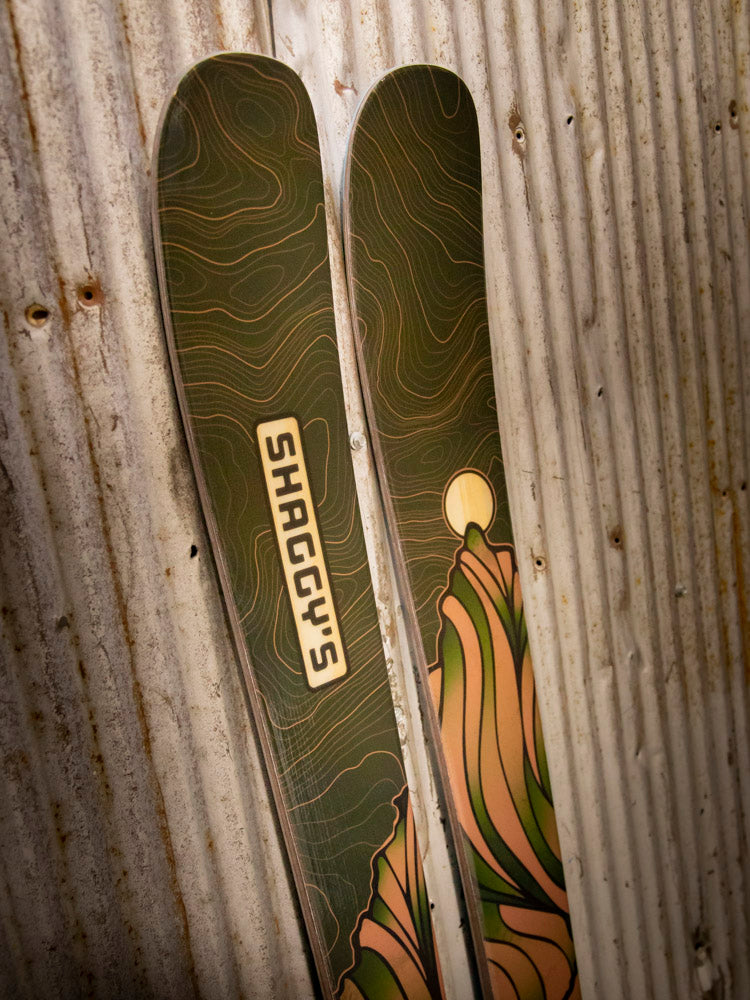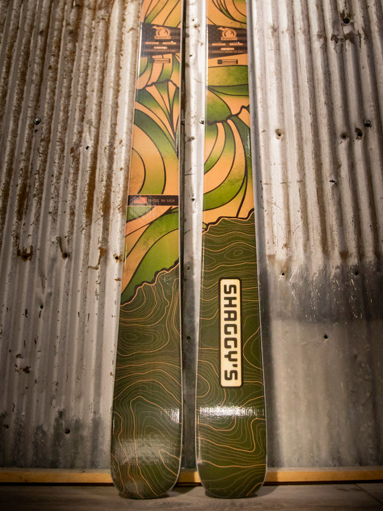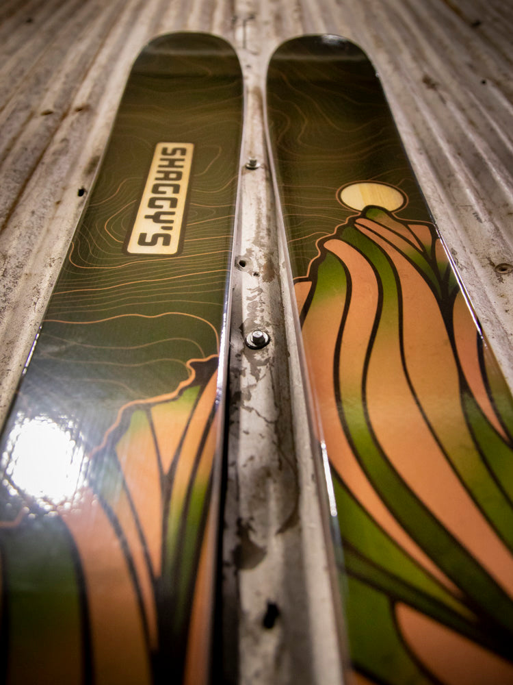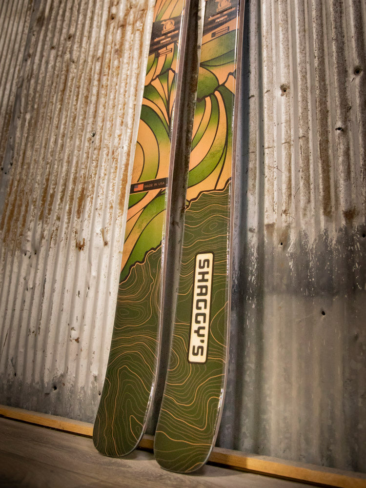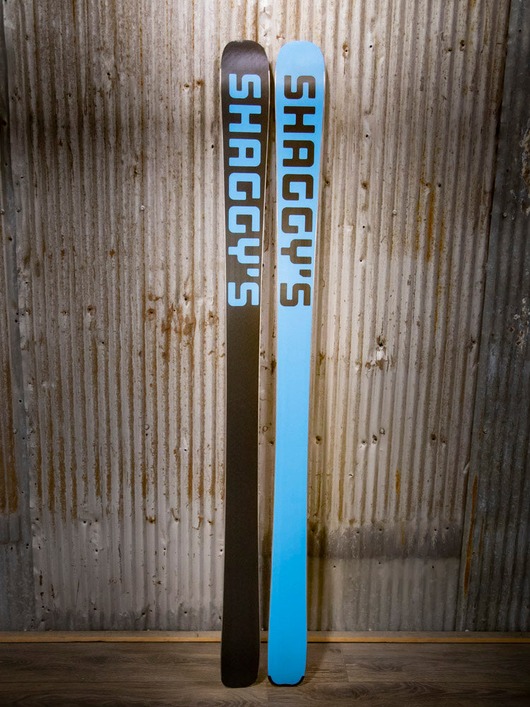 Have you wanted a pair of custom skis to set yourself apart from the rest of the crowd? Here's your opportunity to get your hands on a pair of Shaggy's with a unique look! These skis have a custom graphic and black/blue color swap bases, are already built, and are ready to ship at a moment's notice.