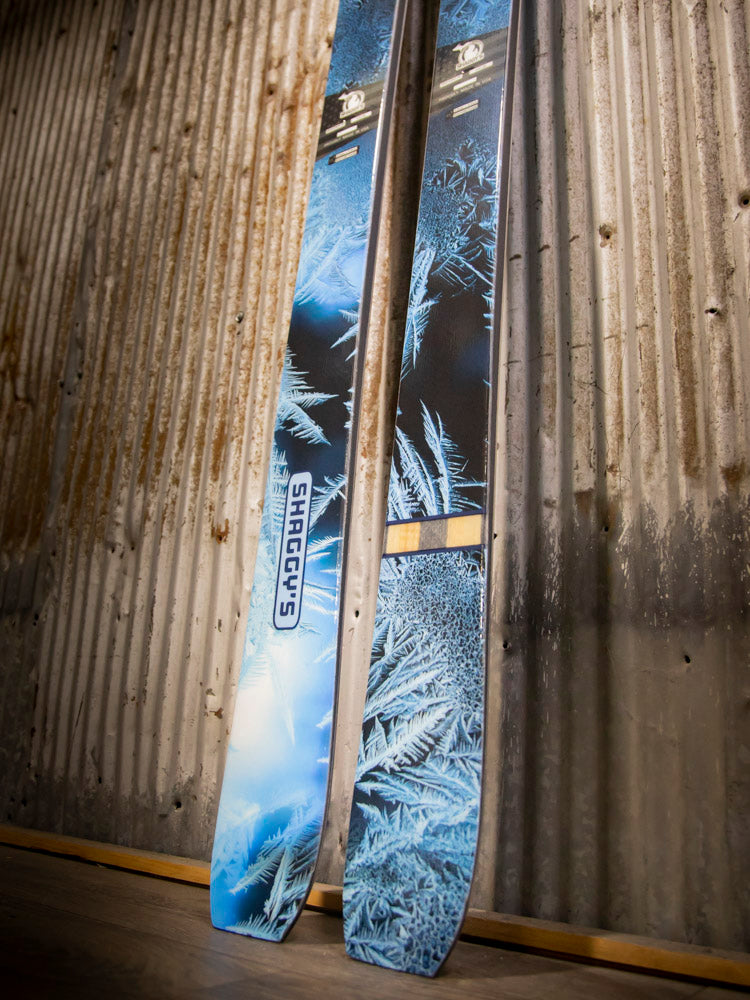 Have you wanted a pair of custom skis to set yourself apart from the rest of the crowd? Here's your opportunity to get your hands on a pair of Shaggy's with a unique look! These skis have a custom graphic and black/blue color swap bases, are already built, and are ready to ship at a moment's notice.