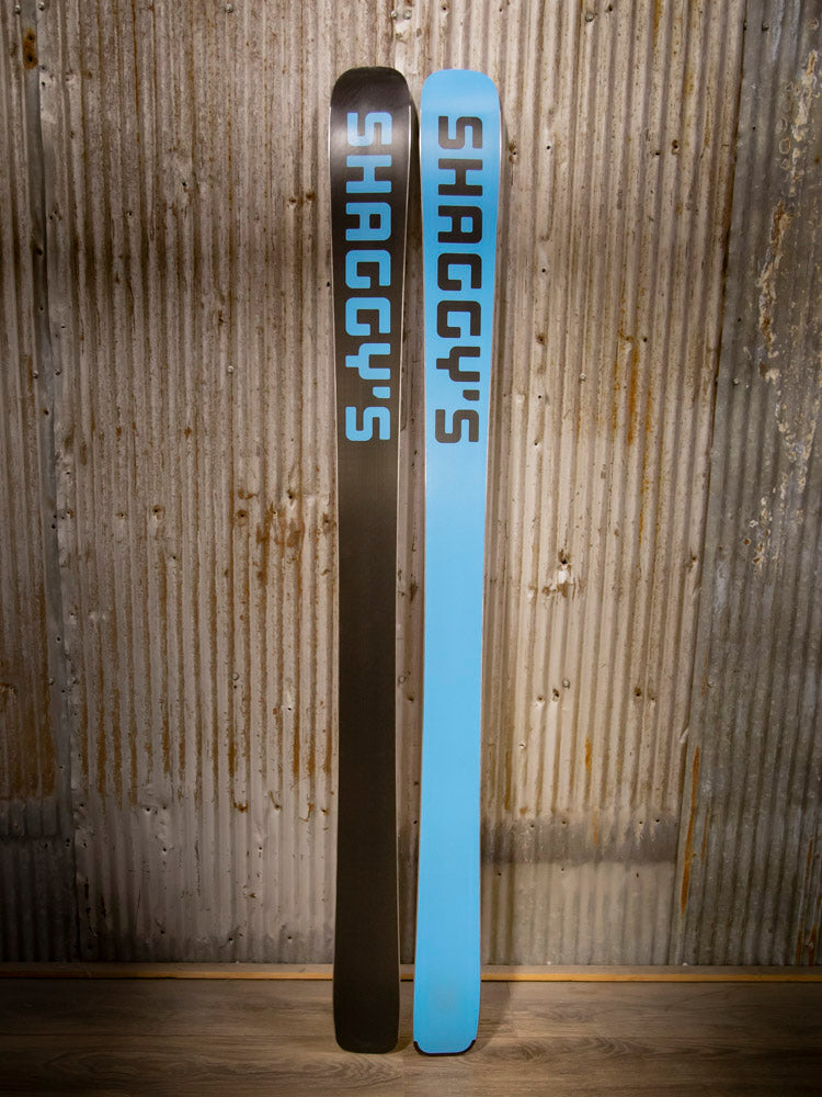 Have you wanted a pair of custom skis to set yourself apart from the rest of the crowd? Here's your opportunity to get your hands on a pair of Shaggy's with a unique look! These skis have a custom graphic and black/blue color swap bases, are already built, and are ready to ship at a moment's notice.