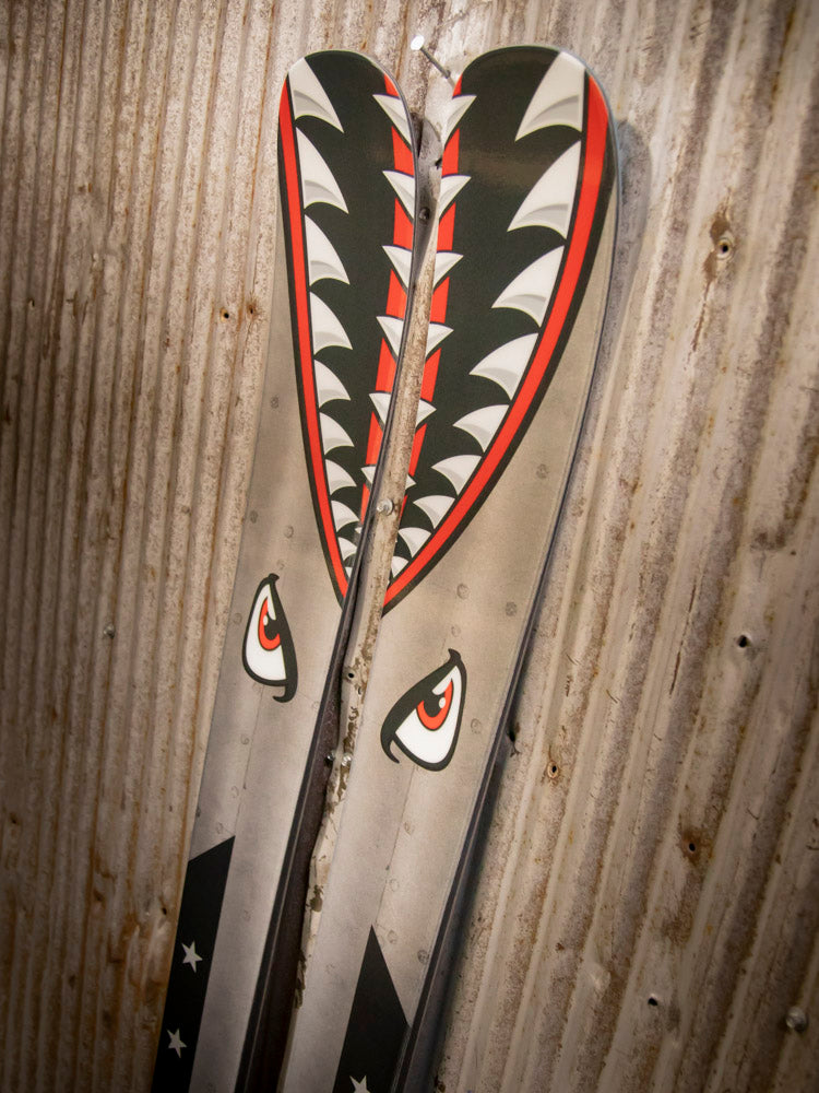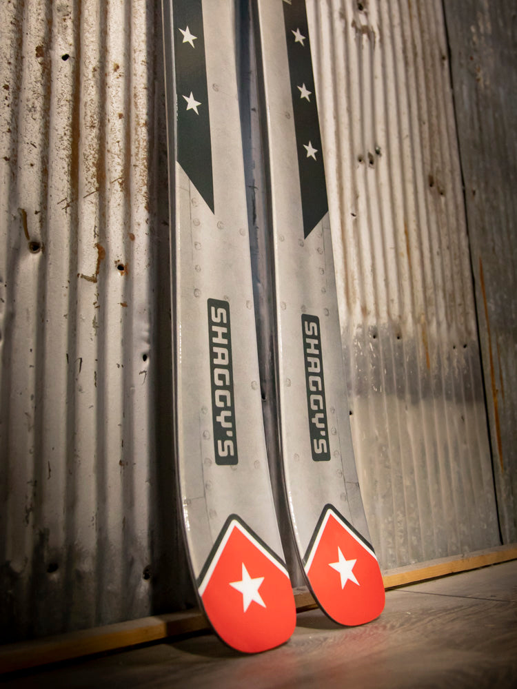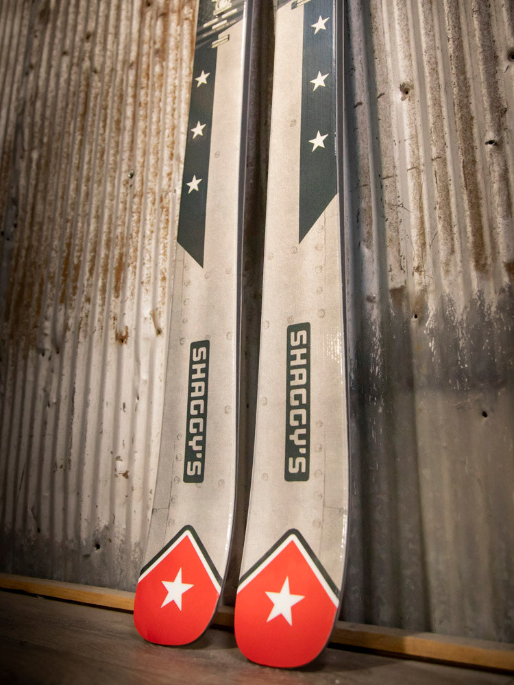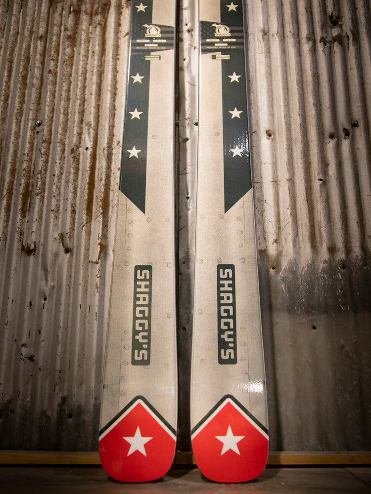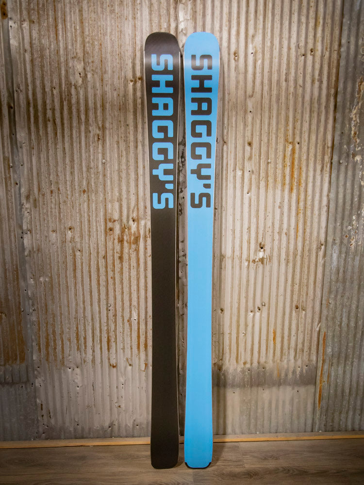 Have you wanted a pair of custom skis to set yourself apart from the rest of the crowd? Here's your opportunity to get your hands on a pair of Shaggy's with a unique look! These skis have a custom graphic and black/blue color swap bases, are already built, and are ready to ship at a moment's notice.
