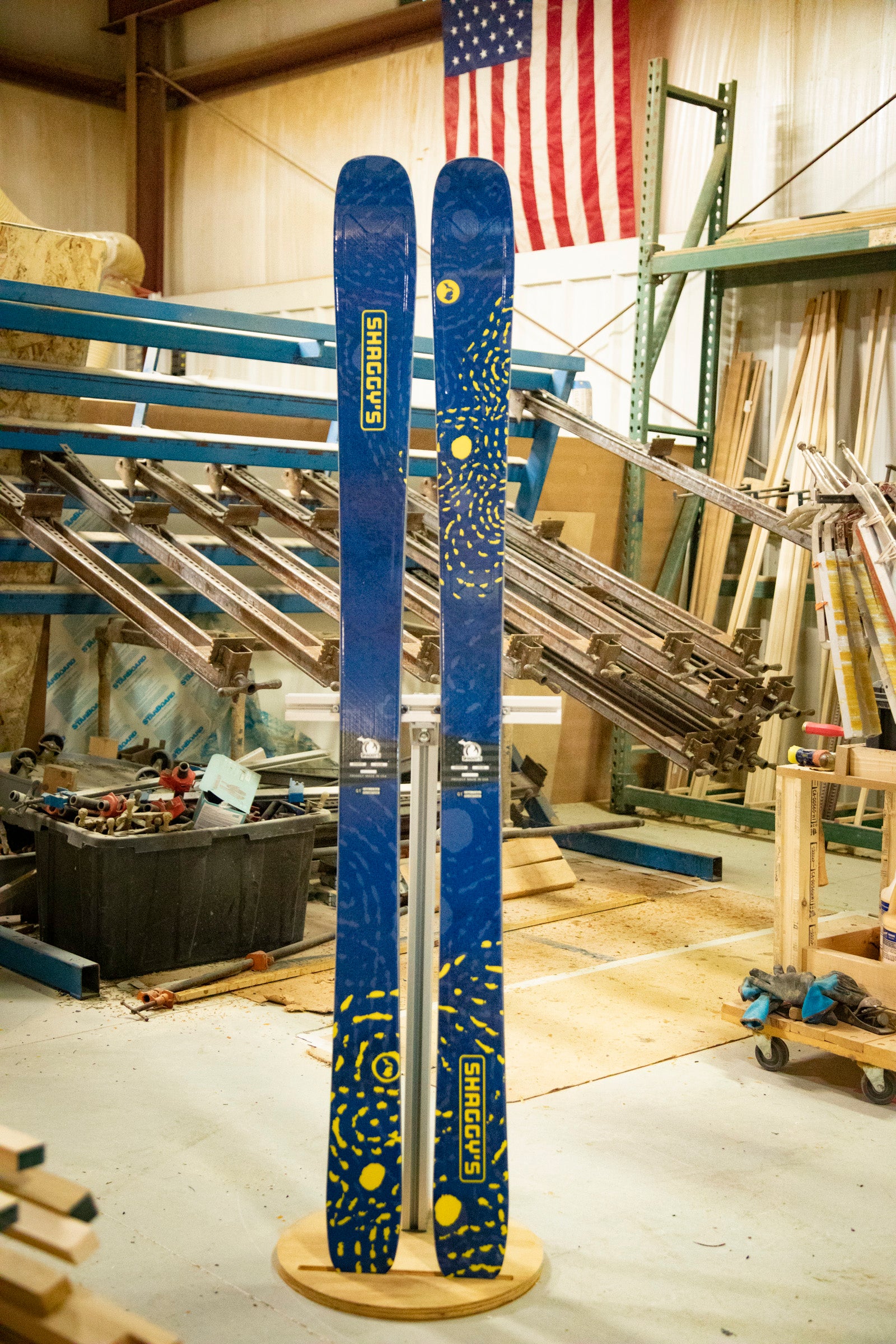 Have you wanted a pair of custom skis to set yourself apart from the rest of the crowd? Here's your opportunity to get your hands on a pair of Shaggy's with a unique look! These skis have a custom graphic and black/blue color swap bases, are already built, and are ready to ship at a moment's notice.