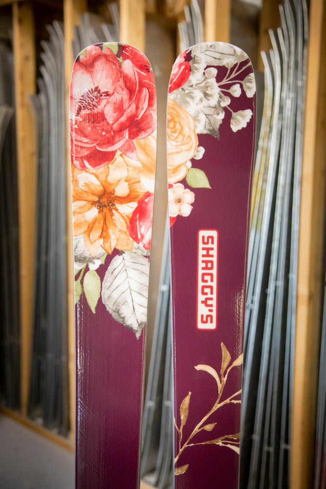 Have you wanted a pair of custom skis to set yourself apart from the rest of the crowd? Here's your opportunity to get your hands on a pair of Shaggy's with a unique look! These skis have a limited edition graphic and black/blue color swap bases, are already built, and are ready to ship at a moment's notice.